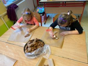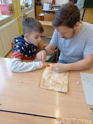 Paní učitelky s nejmladšími žáky připravili vánoční tvoření pro rodiče.