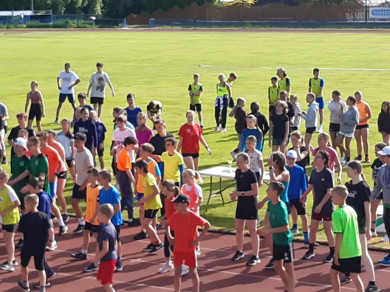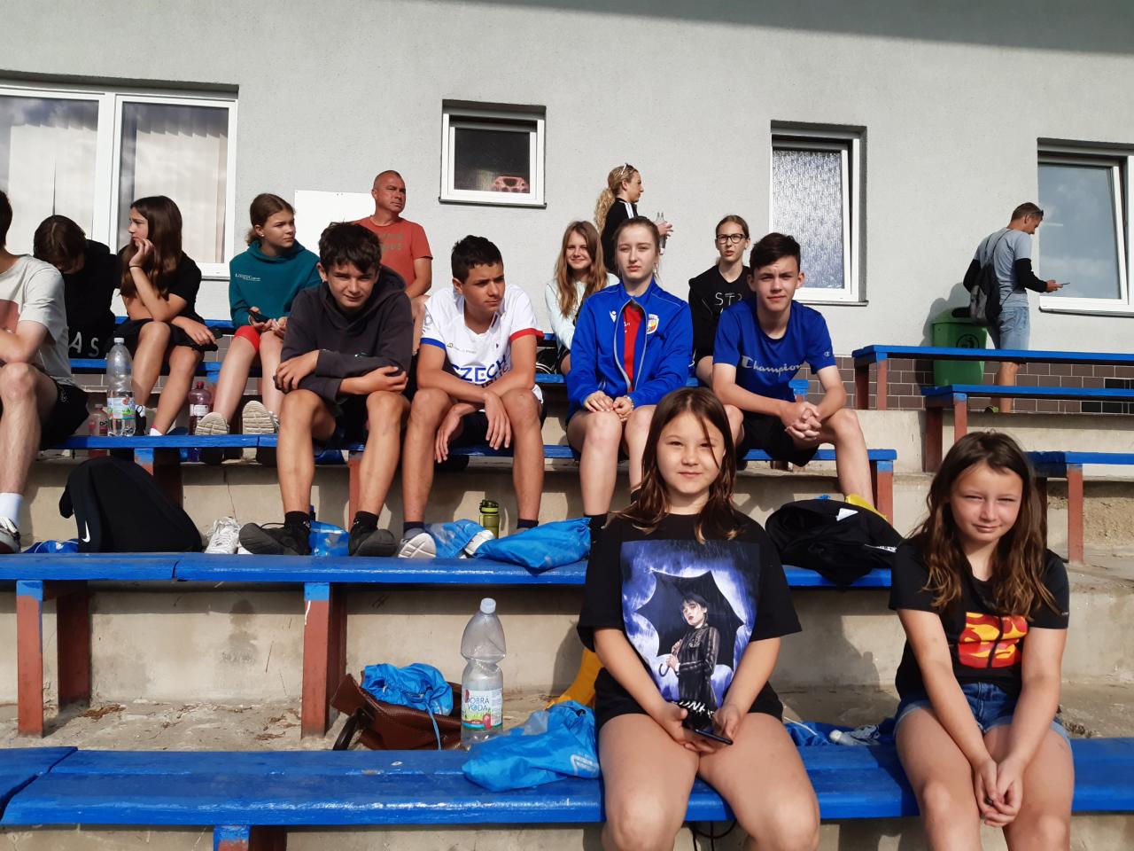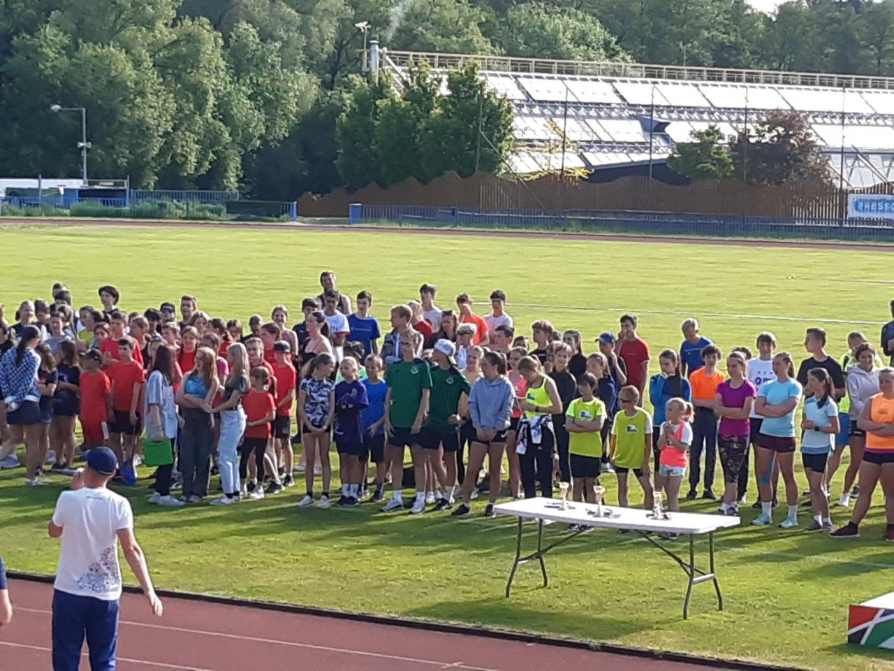 Předposlední májový den jsme se na tradičním místě v Tachově zúčastnili předposledního letošního krajského finále. Účast opět byla žalostná. Z více než tří desítek postupujících zůstala necelá polovina, což nejlépe dokumentuje "zájem" většiny dětí o sport na škole, ale ti, co jeli, určitě nemuseli litovat. Bohužel nejelo mnoho těch, kteří mohli něco uzávodit, a tak poslední naše účast na této akci v historii byla medailově nejchudší ze všech. Jeli jsme opět už navečer a přespali v naší oblíbené útulné tělocvičně Základní školy Zárečná v Tachově, za což moc děkujeme touto cestou panu řediteli Zdeňku Hnátovi. V hezkém počasí se většině závodníků dařilo utvořit si spoustu osobních rekordů. Při neúčasti Míši Paterové zůstalo družstvo ve spodní polovině startovního pole: