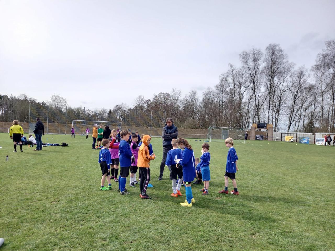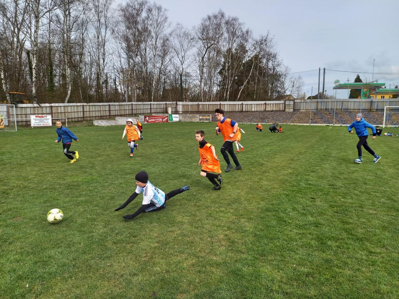 Další soupeř byl přibližně naší úrovně a hrála se vyrovnaná partie. Skóre otevřel přesnou ranou Tomáš Buchanec, kterého hezkou přihrávkou uvolnil Vojtěch Jirků. Zakrátko T. Buchanec unikl po pravé straně, naservíroval míč před branku a tam Štěpán Hřebřina nadvakrát propasíroval balón za brankovou čáru. Těsně před přestávkou hosté ze závaru před brankou snížili, ale hned po změně stran Nela Jarošová vysunula po zisku míče středem hřiště Tomáše Buchance, jenž křižnou střelou vrátil našim barvám dvoubrankové vedení. Netrvalo dlouho a výkop Míry Bilého si našel kdo jiný než Tomáš Buchanec, obešel bránícího hráče a k bližší tyči zvýšil na 4:1. Volduští pak ze skrumáže před bránou snížili na 4:2, ale poslední slovo měl Tomáš Buchanec, který dorazil do sítě Hřebřinovu střelu a naši nejmladší se tak mohli radovat ze zisku stříbrných medailí.