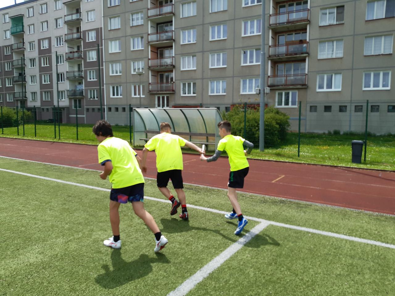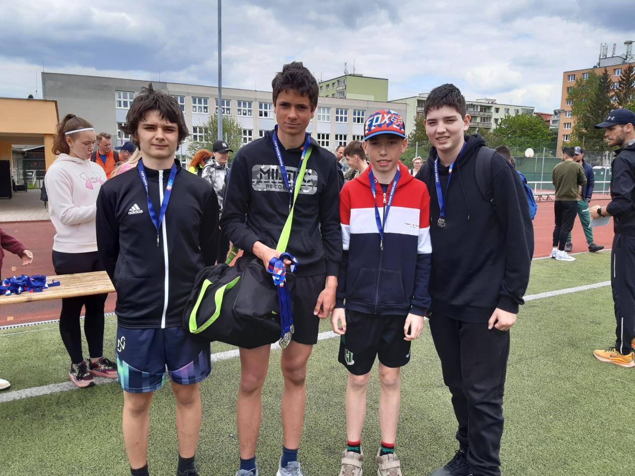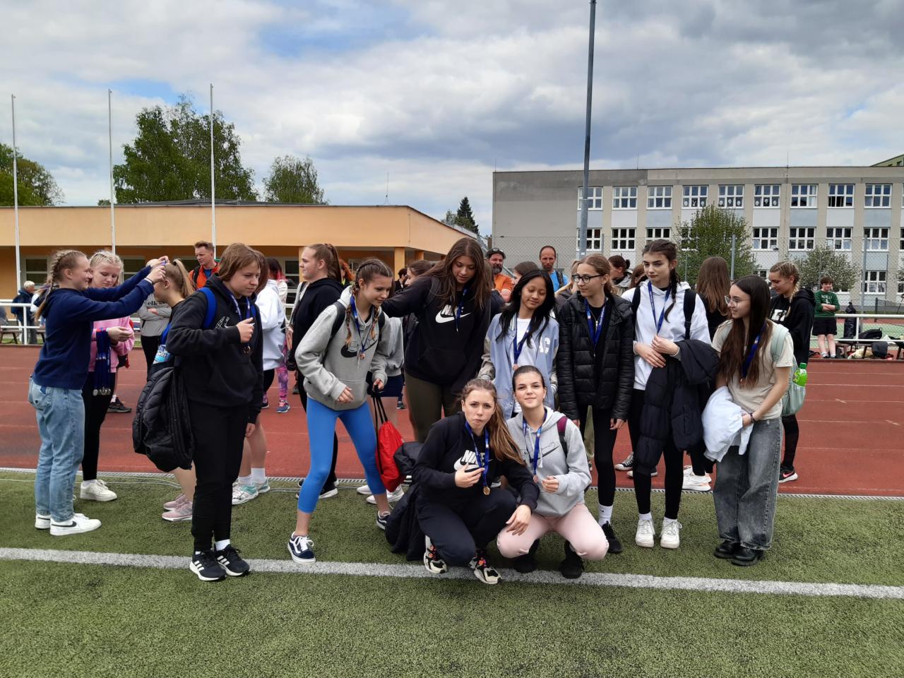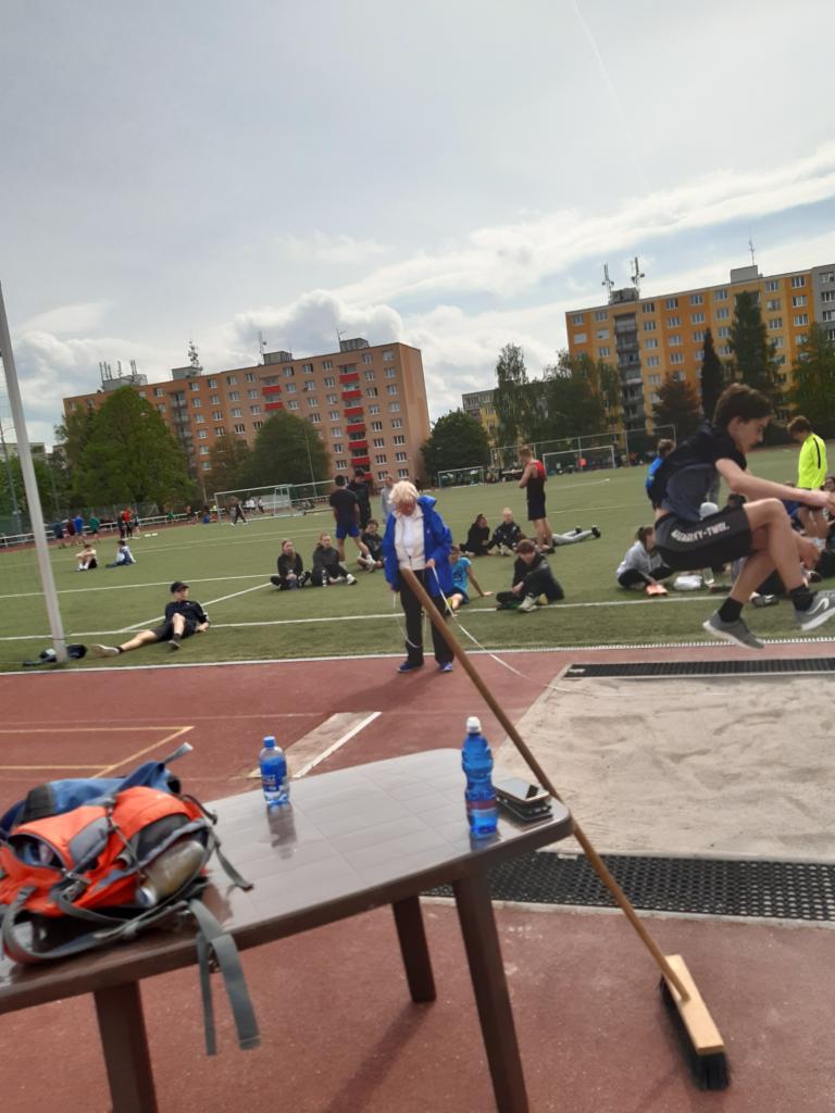 1. místo starších kluků - nelze popsat jinak než jako obrovskou radost, měli jsme dva nejlepší sprintery, nejlepšího koulaře, famózního Kubu na výšce, kterého porazil jen "profi" výškař, štafeta zbytek startovního pole doslova zdecimovala - plynulost našich předávek byla úžasná, kterou nám mohli závidět i domácí. Dalo by se říct, že je to v podstatě strop toho, co se nechá nacvičit ve školních podmínkách. Zarputile válčili na míli Dan s Lukášem. Závod nám ukázal, že bychom se pro krajské finále mohli pokusit z Tomáše udělat zajíce. To proběhne 25. 5. v Domažlicích a jak správně poznamenali sami kluci, musíme ještě zapracovat na dálce. Máme na to ještě 2 hodiny a pokusíme se potrénovat, aby na nás na Chodsku nezbyl Černý Petr. Všem klukům moc děkuju za to, jak moc chtěli jet, uspět a také po zásluze uspěli.