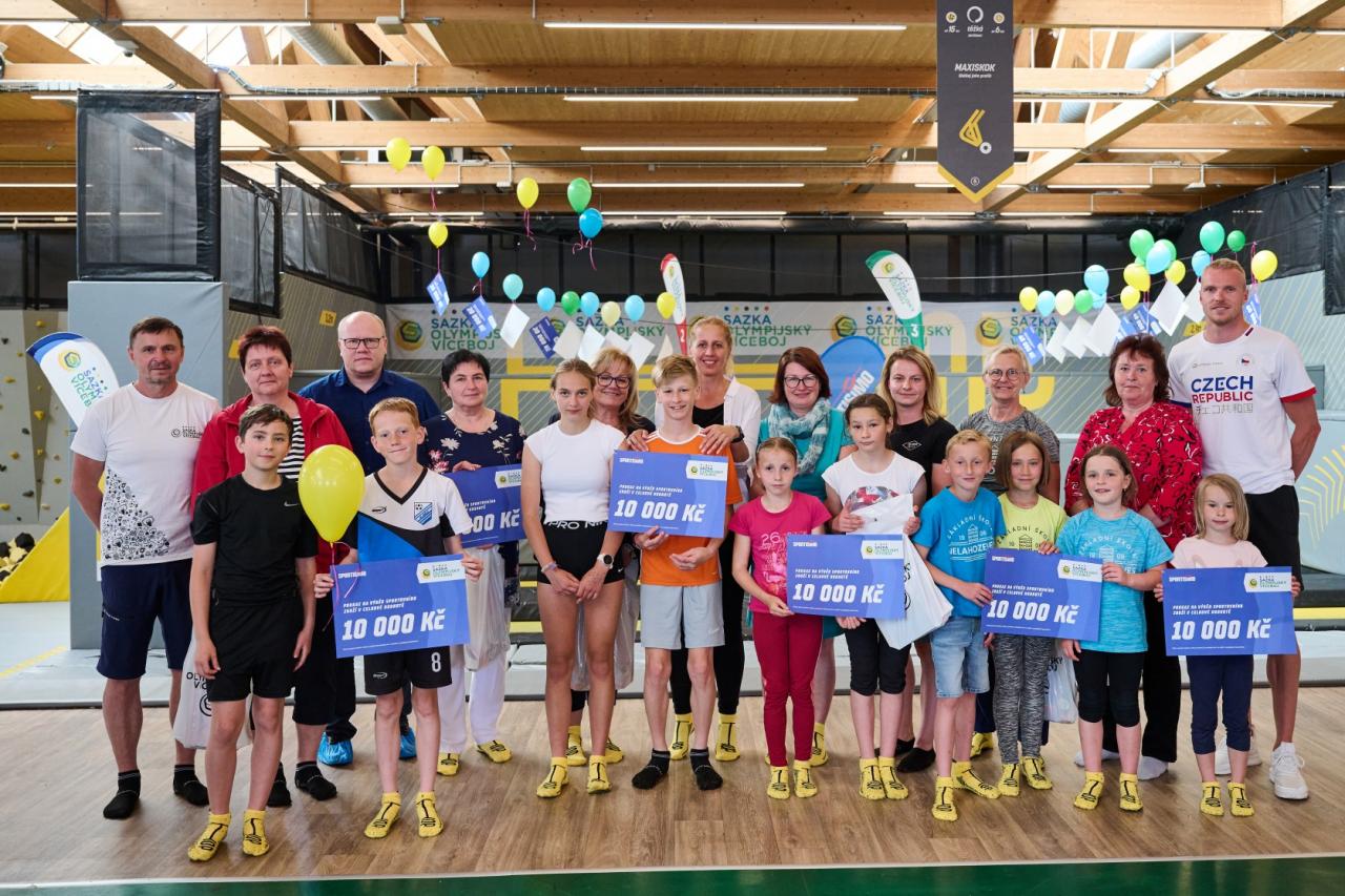 Ve středu, 14. 6. se v Hop aréně v Praze - Čestlicích uskutečnilo slavnostní předání výherních šeků z projektu Sazka olympijský víceboj. Na naší školu se usmálo štěstí již podruhé a budeme moci náš už bez tak skvěle vybavený kabinet rozšířit o další pomůcky v hodnotě 20 000 Kč. Celá akce měla slavnostní rámec a ze sportovních celebrit se jí účastnili stříbrný medailista z LOH v Tokiu 2020 ve vodním slalomu C 1, kajakář Lukáš Rohan, trojnásobný medailista z atletického halového ME ve štafetě 4x400 m, Patrik Šorm a plzeňská rodačka, bývalá deblová specialistka, vítězka French Open i US Open, Andrea Sestini Hlaváčková. Celý program nemoderoval nikdo menší než mistryně světa a bronzová olympijská medailistka v trojskoku, atletka Šárka Kašpárková. 20 000 není malá suma a když se předání konalo v Hop aréně, bylo velice prozíravé, že jsem vybral tři urostlé sportovce a sportovkyni. Cestu pro zisk šeku totiž představoval skok z jedné z trampolín na makety zavěšené ve výšce. V losování mezi Mišou Ottovu, Petrem Krejčím a Tomášem Galbavým se štěstěna usmála na posledně jmenovaného a obnos byl rázem náš. Krom částky, se kterou si určitě budeme vědět rady, nás všechny hřál i nevšední sportovně - společenský zážitek. Věřím, že si všichni tři tuto odměnu užili.