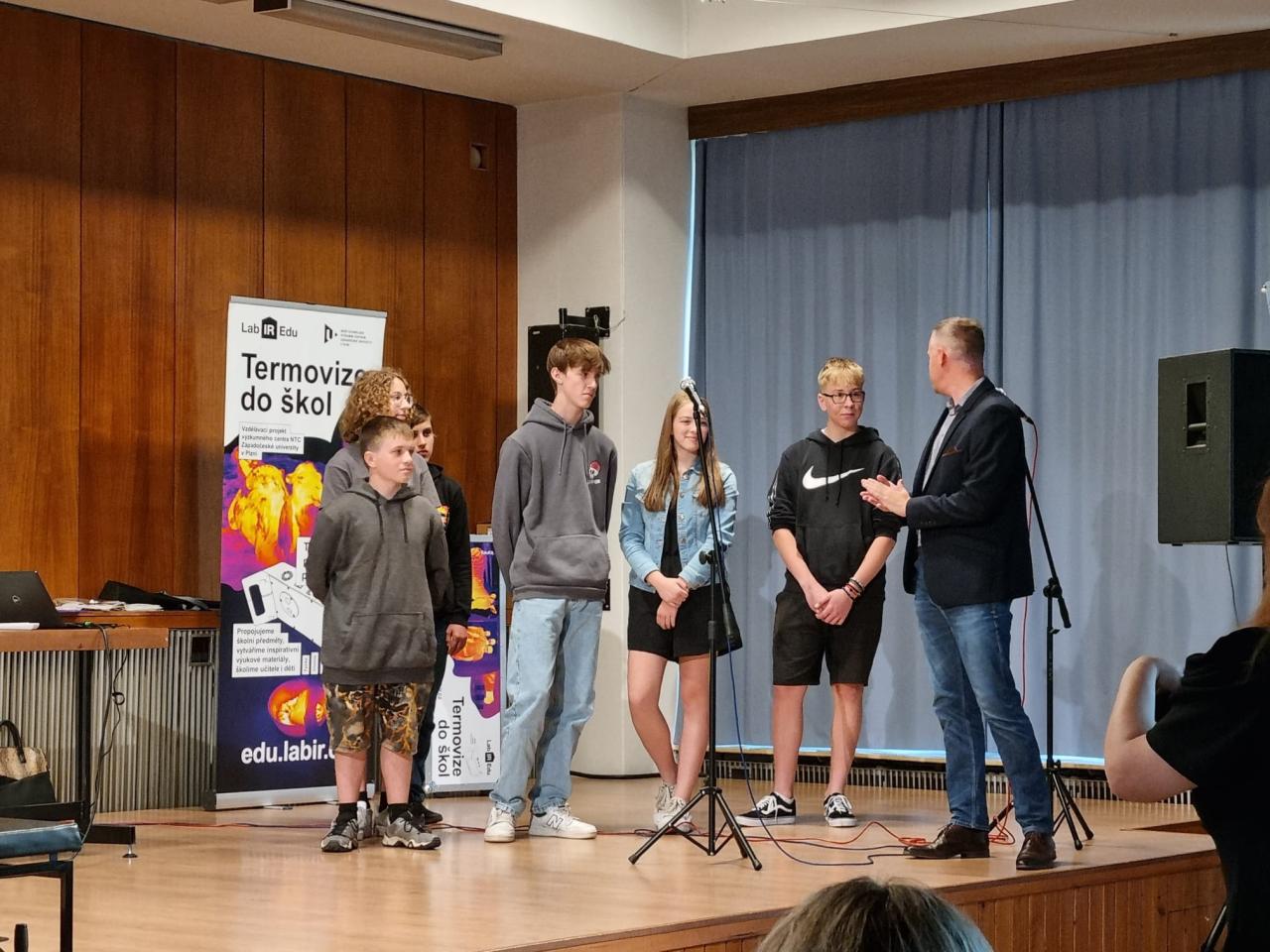 Práce bylo mnoho, ale úsilí se vyplatilo. Náš tým, který odjel do Rokycan projekt prezentovat ostatním, vyhrál 1. místo a poukázku na 5. 000,- Kč. Jsme patřičně pyšní a děkujeme tímto vedoucí týmu i žákům za skvělou reprezentaci naší školy. Jen tak dál.