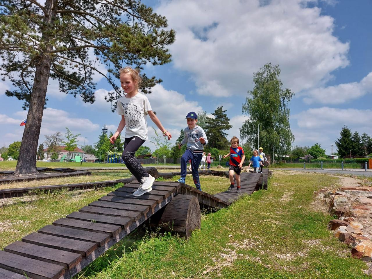 V místě děti využily i dalšího vybavení areálu: prolézačky, in line dráhu, pumptrack, koše na basket či na dřevěné lávky.