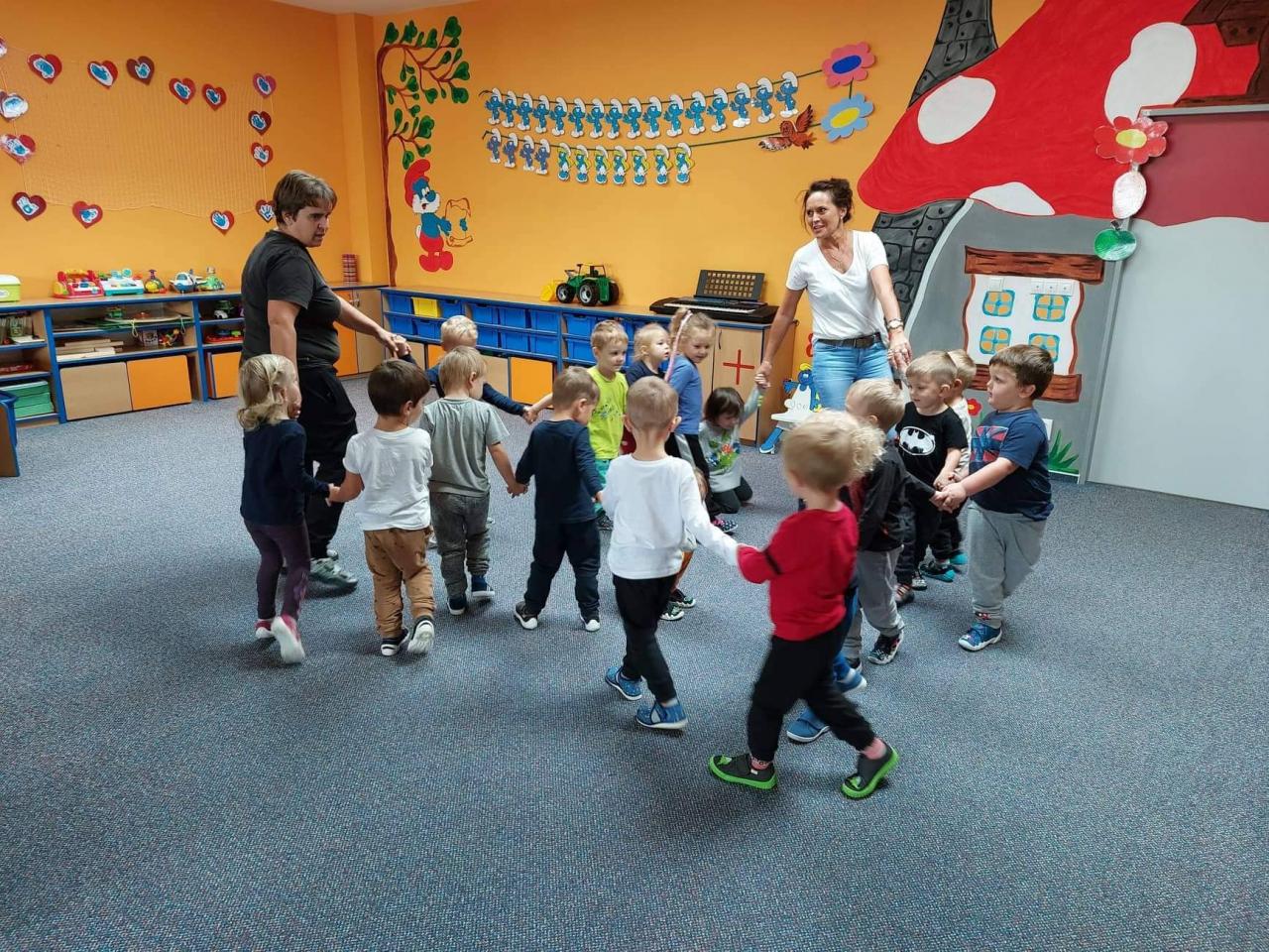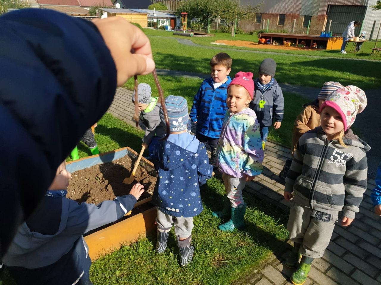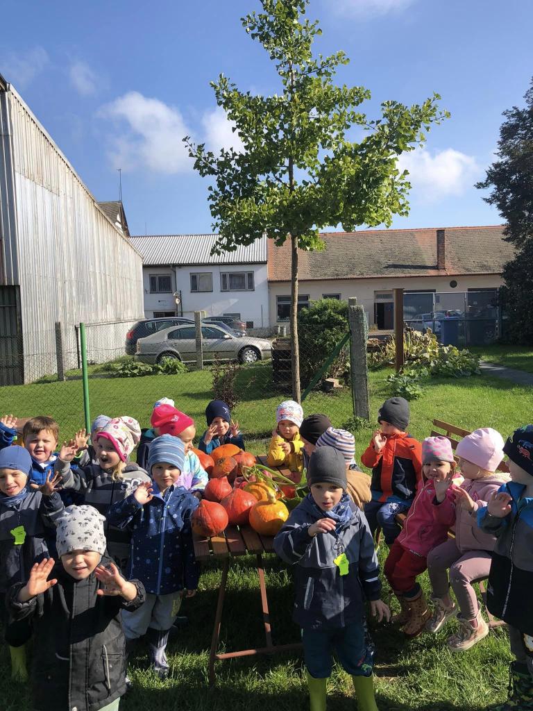 Září prožily děti v mateřské škole s plody podzimu - obilí, brambory, dýně a houby. Oslavili jsme svátek svatého Václava a při té příležitosti jsme zavítali do kostela na náměstí. Pokud nám počasí přálo, trávili jsme čas v přírodě.